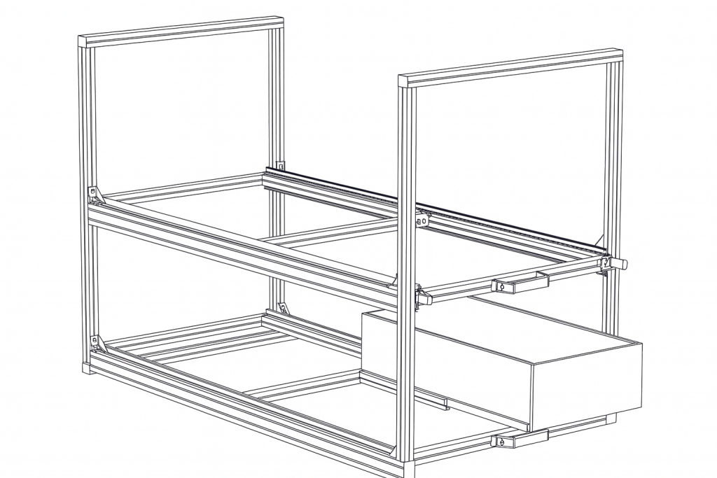 Mach mehr aus deinem Fahrzeug: Mit unseren DIY-Sets, passgenauen Stücklisten zum Selbstbestellen oder maßgefertigten Heckauszügen auf Basis von Aluminium-Itemprofilen schaffst du Ordnung, Stauraum und Komfort beim Campen.